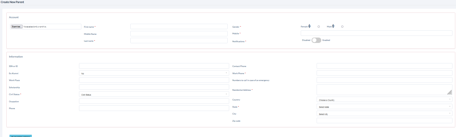 NameContact information (phone number, email address)Relationship to the student (e.g., mother, father, guardian)Workplace informationEmergency contactsPostal and physical addresses
