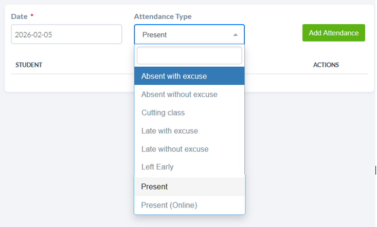 - Condiciones Diferentes: Si algún estudiante presenta una condición diferente en la asistencia (como Tarde sin excusa o Ausente sin excusa), el maestro puede seleccionarlo y repetir el proceso de registro. Esto es importante ya que, en estos casos, se enviará automáticamente una notificación por correo electrónico a los padres, informándoles de la situación.