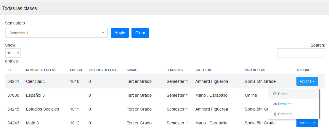 La funcionalidad Clases permite a los usuarios consultar y crear todas las clases que se imparten en la institución. Es una herramienta esencial para la gestión académica, que facilita el registro y organización de la oferta educativa. Paso 1: Crear ...