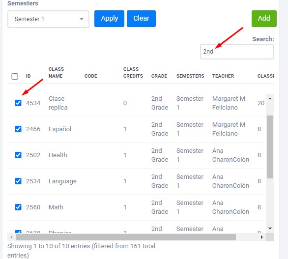 - Asegúrese de que las clases estén vinculadas en ambos semestres, aunque el estudiante se haya unido en el segundo semestre.