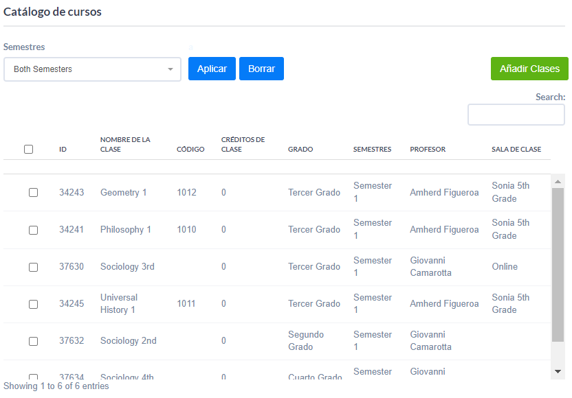 Paso 2. Asignación de Clases desde el Catálogo de Cursos