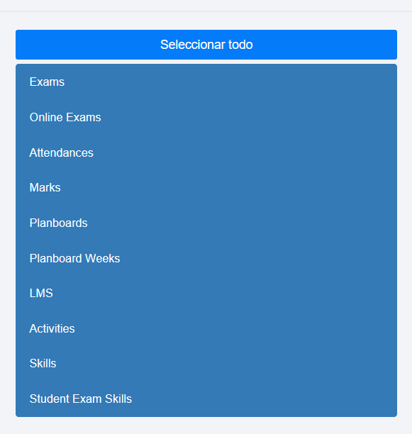 - En la tabla del centro, observamos toda la información que se puede transferir, podemos seleccionar una a una, o escoger la opción Seleccionar todo (que es la más usual)
