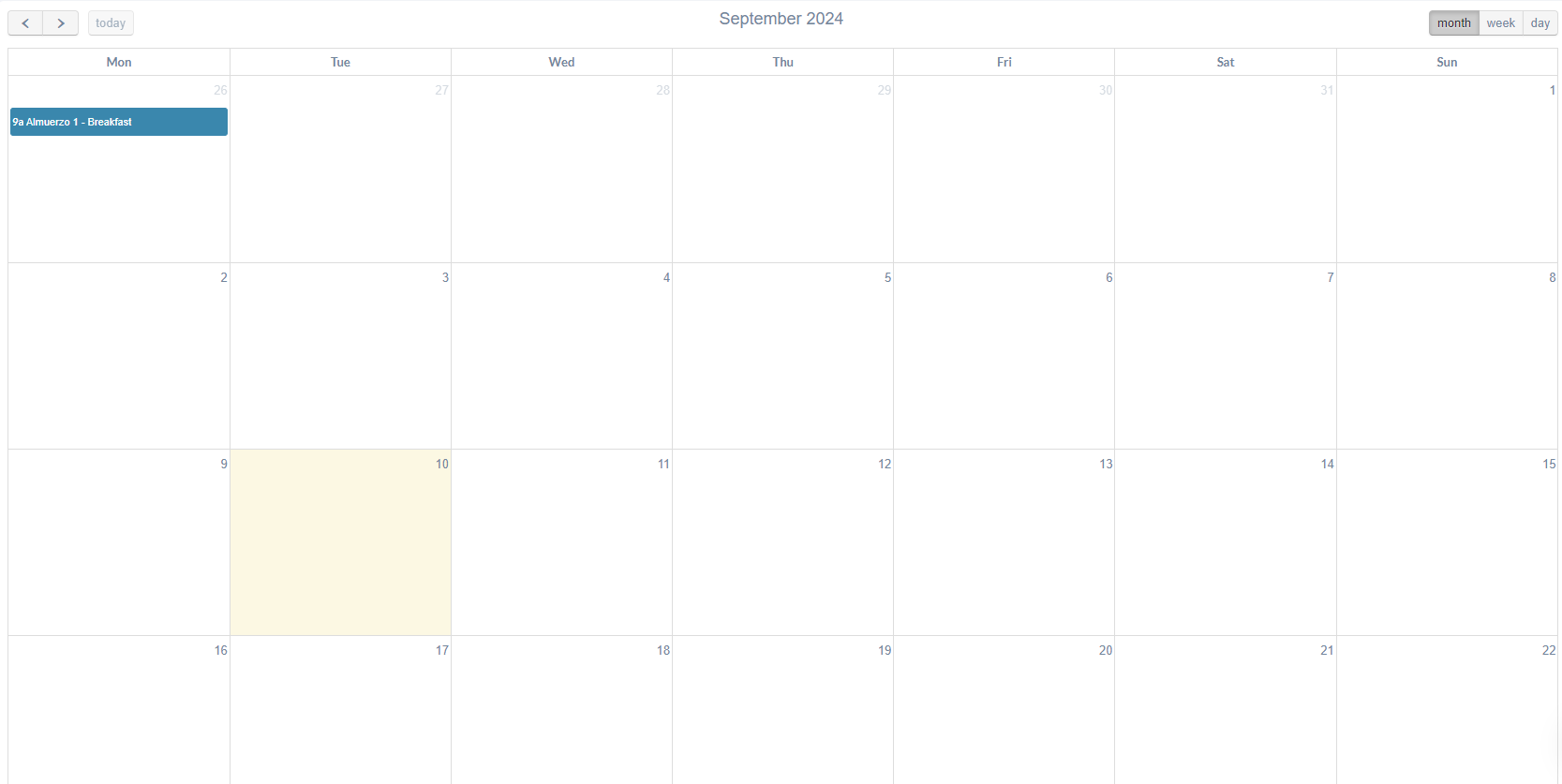 - En la vista seleccionada, podrá ver los detalles del desayuno y almuerzo programados para el periodo escogido.
