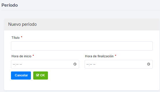 - En el lado izquierdo de la pantalla, ingrese el nombre del periodo, junto con la hora de inicio y la hora de finalización.