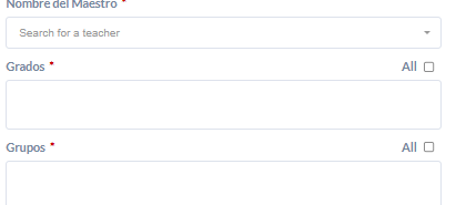 - Utilice los filtros en el lado izquierdo de la pantalla para seleccionar la información que desea consultar: nombre del maestro, grados y grupos.