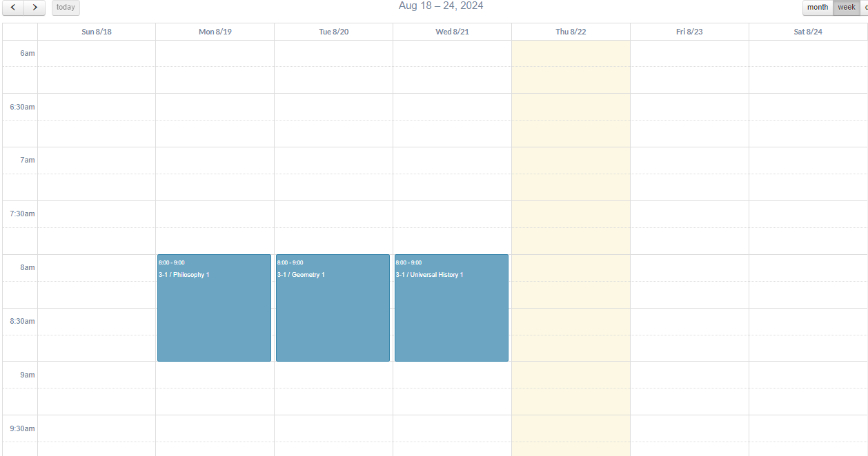 - La información del horario del estudiante se mostrará en el lado derecho de la pantalla.